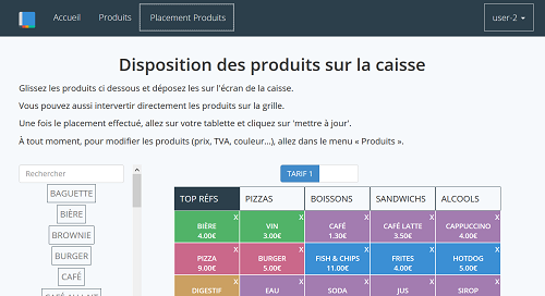 Les produits affichés sont facilement modifiables, tout changement de carte se répercute sur la caisse instantanément.